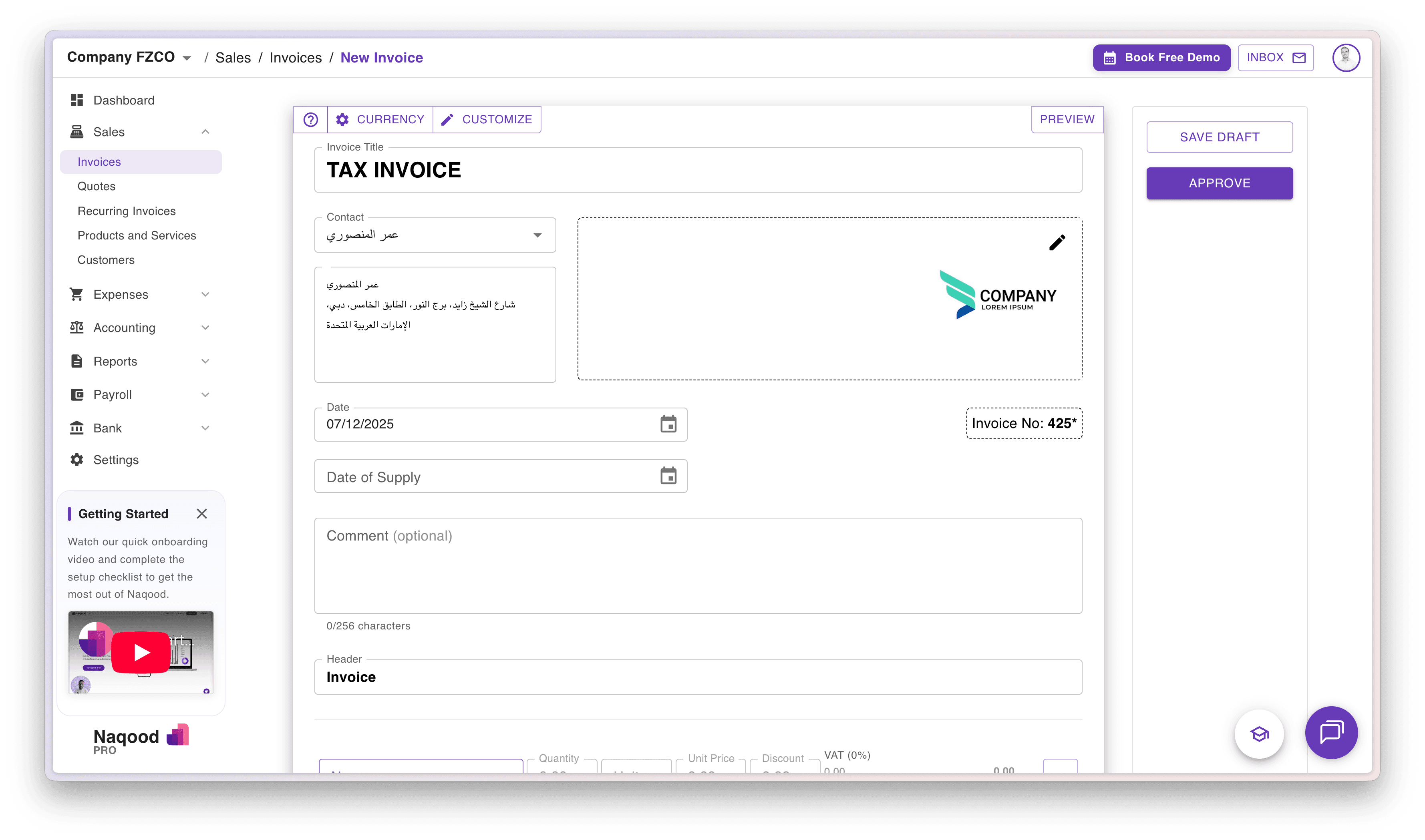 Invoices, and documents exported to PDF now support Arabic fonts, ensuring clean, properly formatted Arabic output.