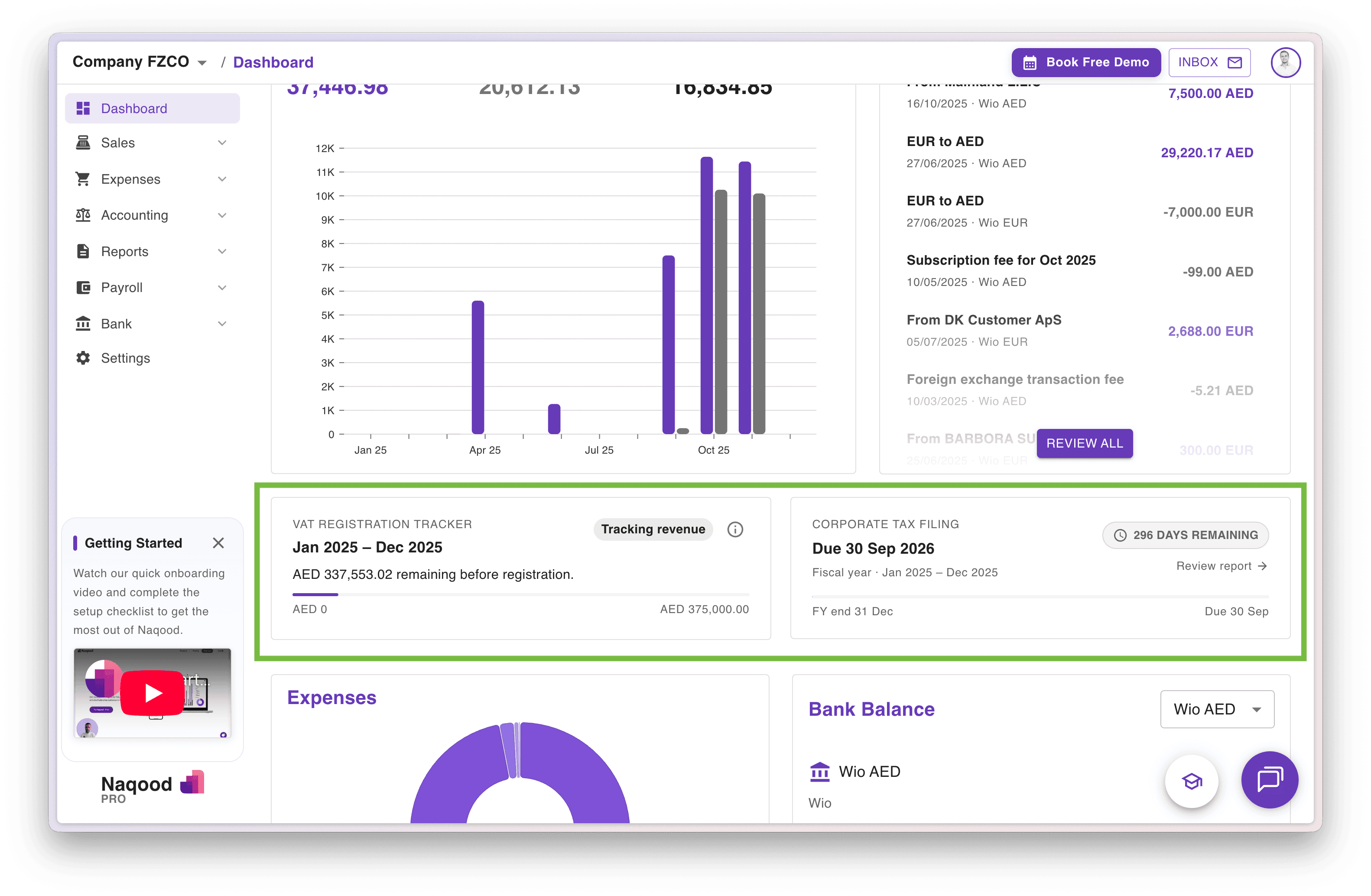 Staying compliant just became much easier. Your dashboard now helps you keep track of all key VAT and Corporate Tax obligations.