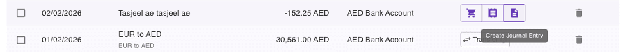 💡 Tip: Naqood automatically calculates exchange rate gains/losses on foreign transactions per FTA requirements. This means an AED value will be calculated for your foreign holdings. Use the "Currency Conversion" template at year-end to adjust any balances.