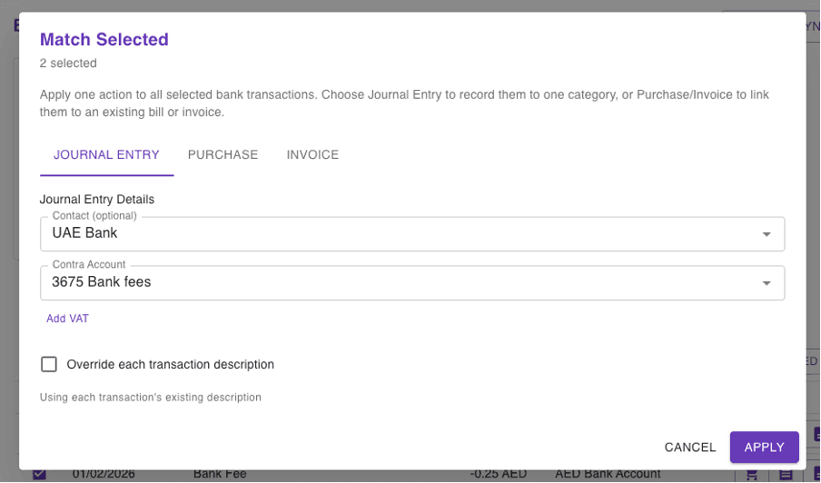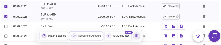 ⚠️ Note: You can only select 2 transactions at a time (one debit, one credit).