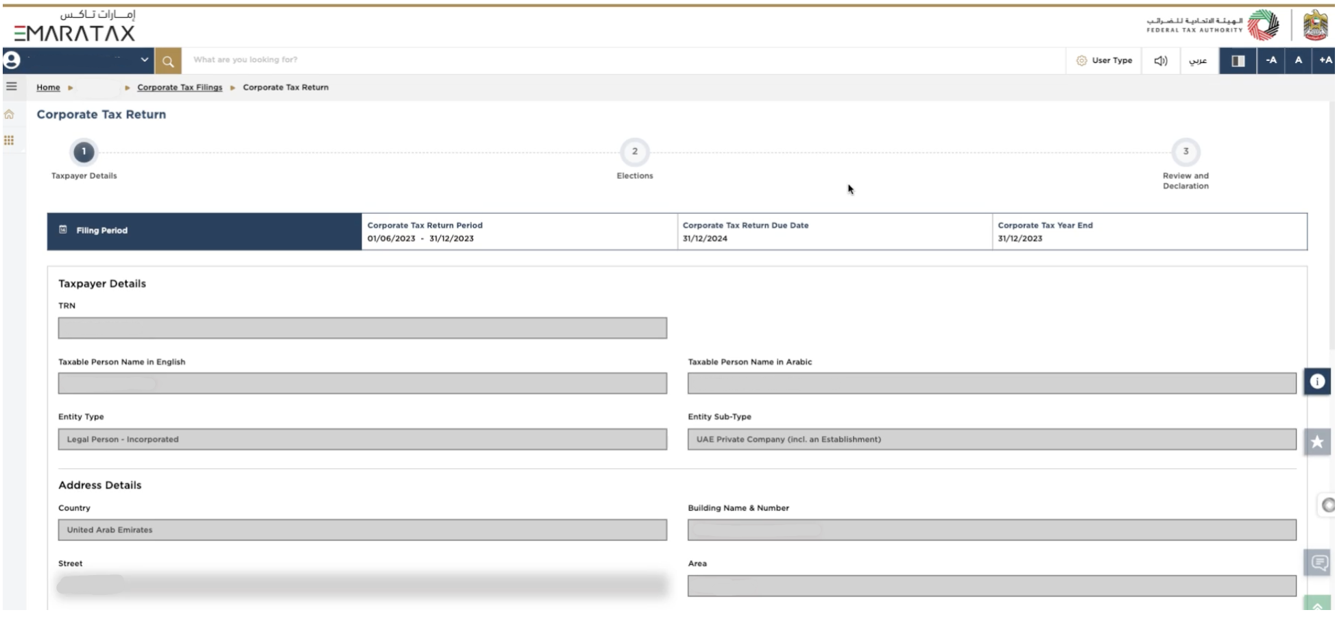 If the action does not appear, it means your corporate tax period has not yet ended or that the FTA hasn’t open for your filing. You will need to wait until it closes before you can file.