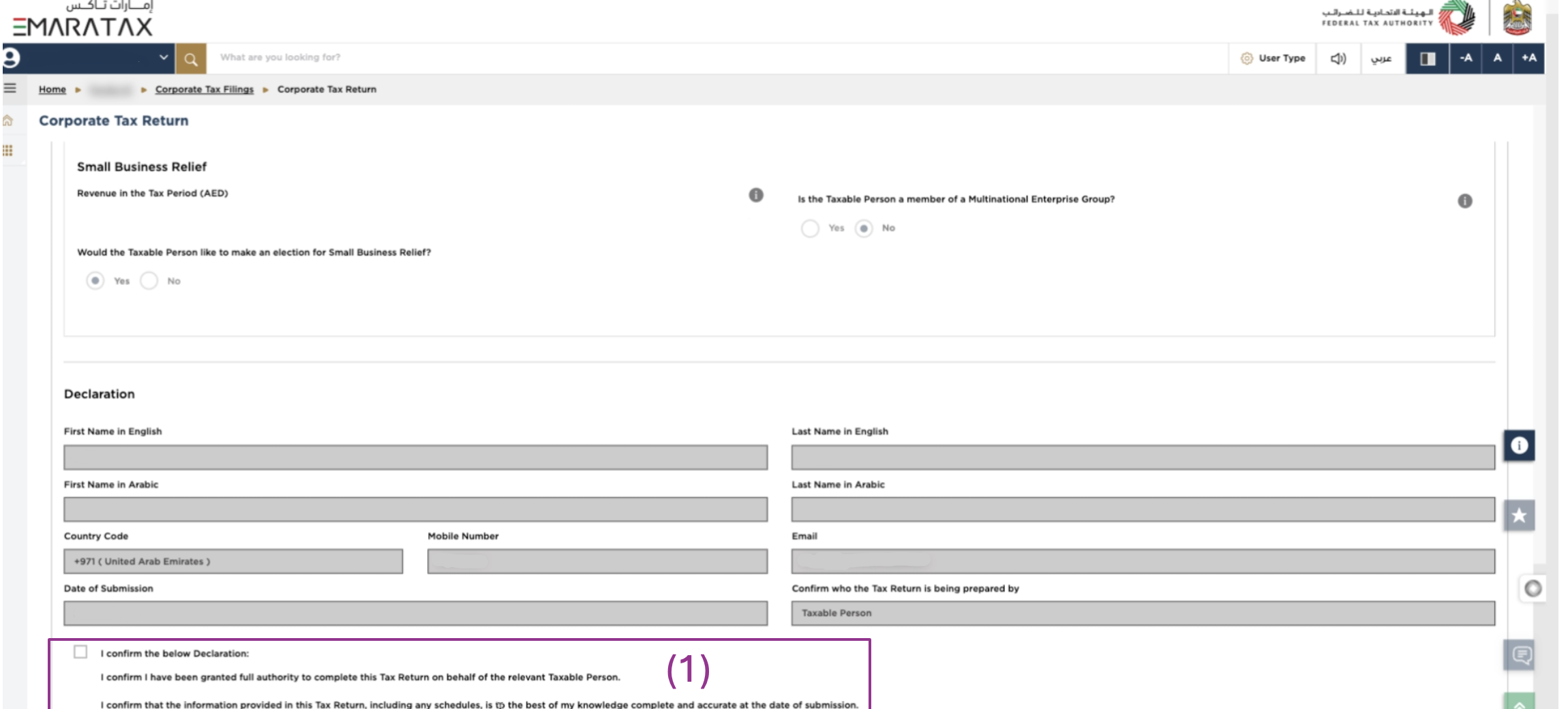 Step 1 - Login to EmaraTax