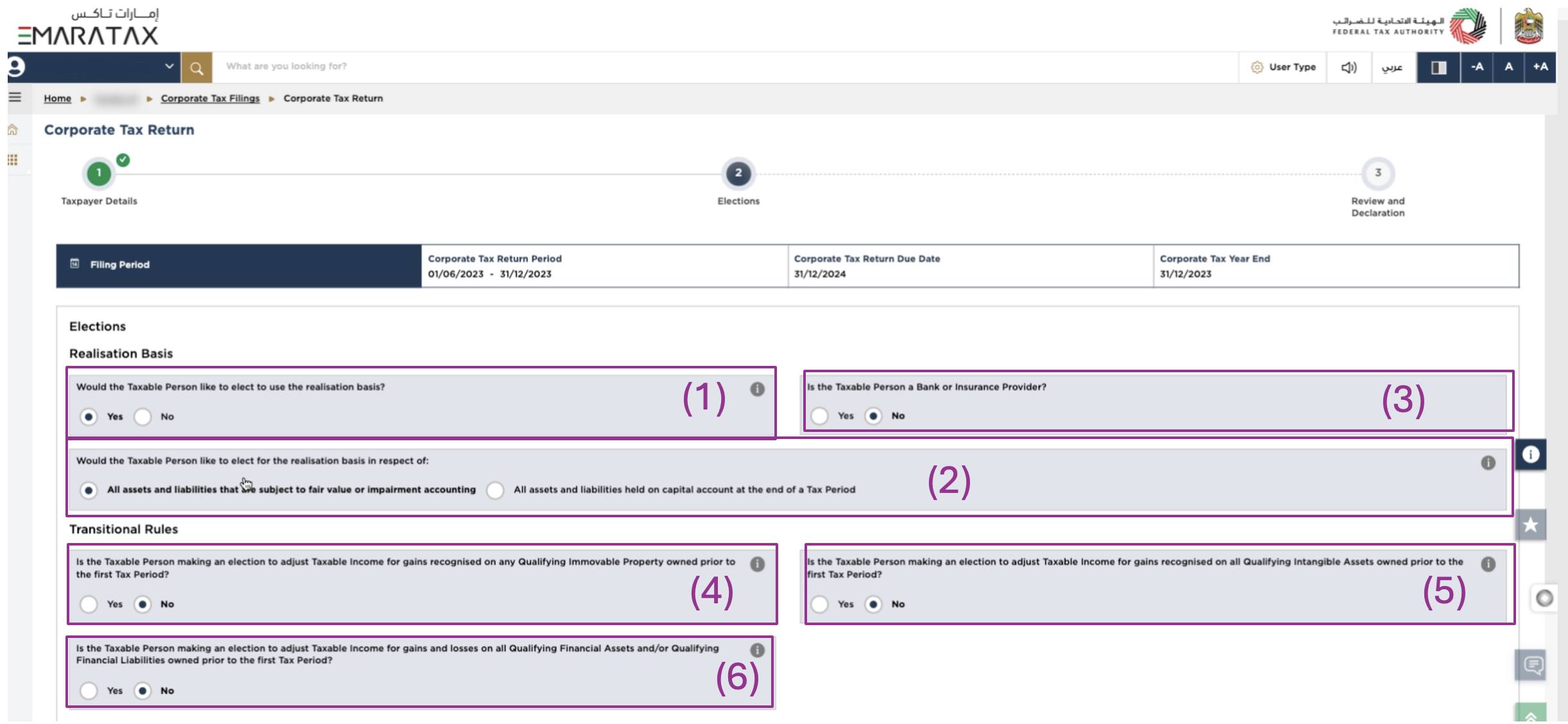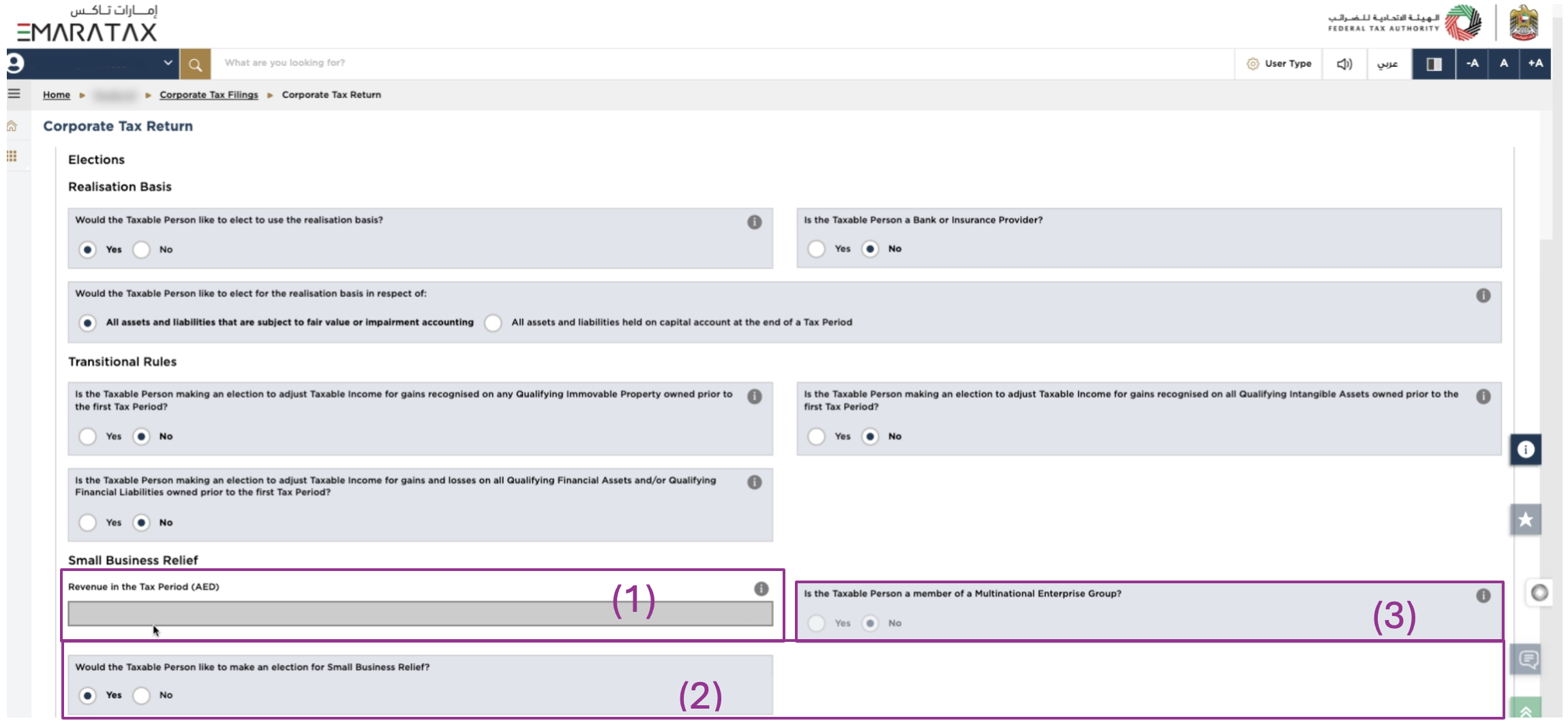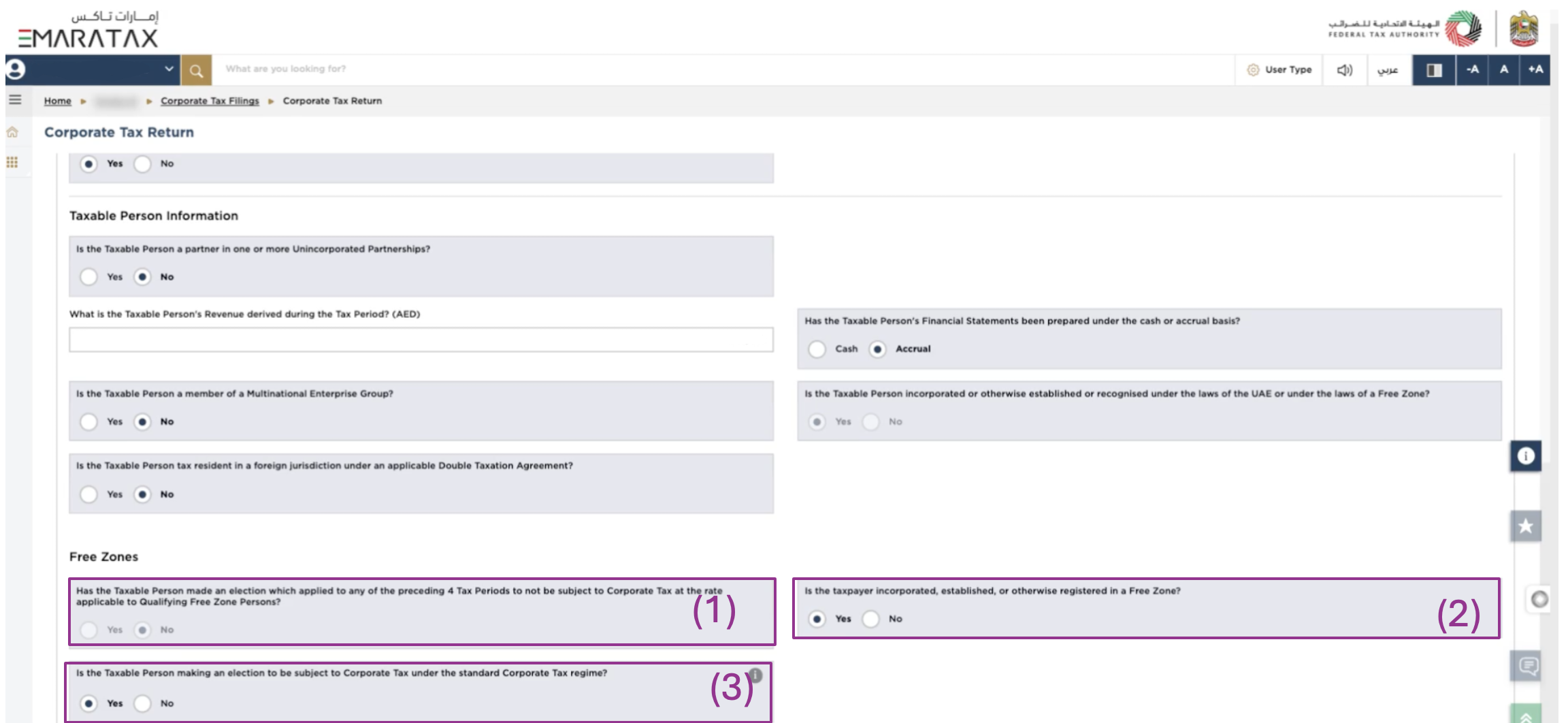 (3) Is the Taxable Person making an election to be subject to Corporate Tax under the standard Corporate Tax regime?