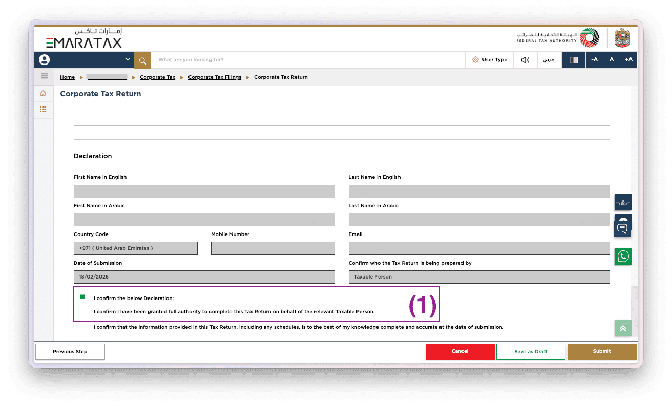 If the action does not appear, it means your corporate tax period has not yet ended or that the FTA hasn't open for your filing. You will need to wait until it closes before you can file.