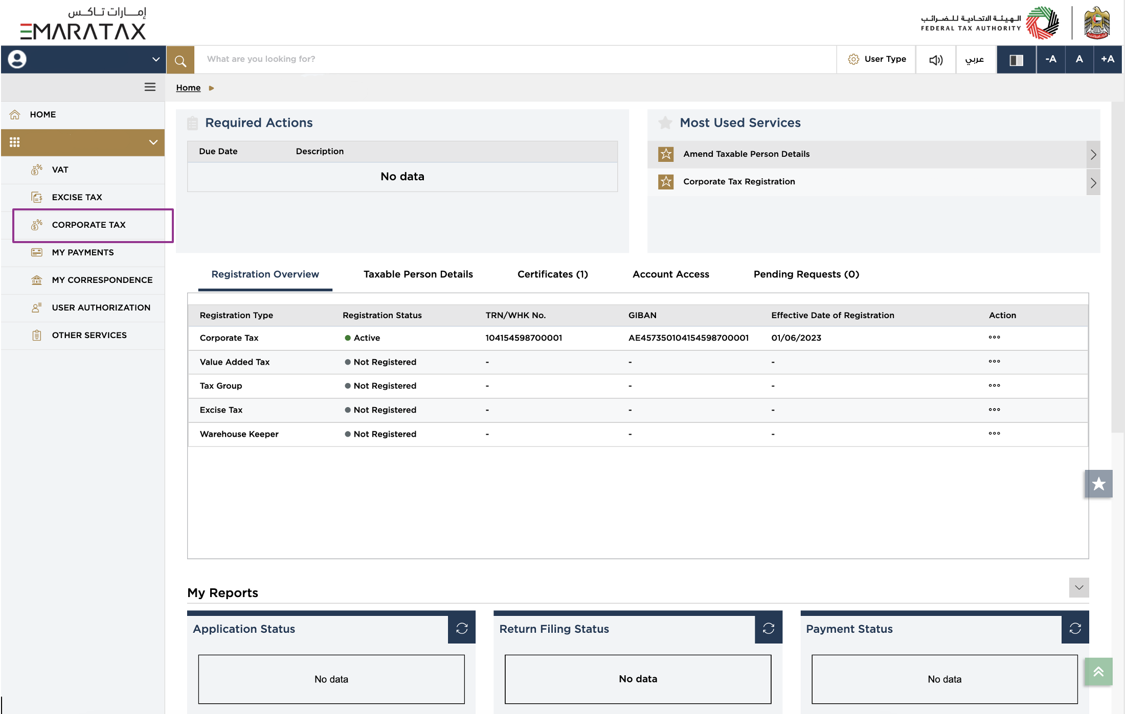Go to “Required Actions” and select Corporate Tax – Return Submission.